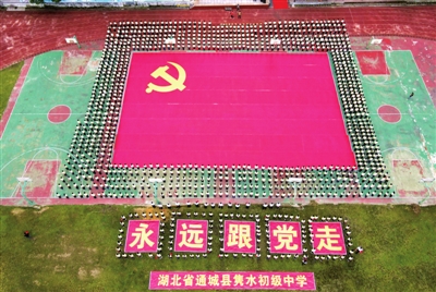 “我宣誓:听党话,跟党走,永做红色接班人!”5月27日,通城县隽水初级中学举办“红色点亮青春·1000名师生共绘千平米党旗”活动,向中国共产党成立100周年献礼。