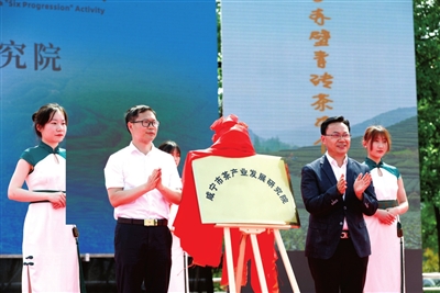 产业的腾飞,离不开科技与人才助力。为集聚产业发展动能,汇集创新发展人才,当天还举行了咸宁市茶产业发展研究院成立仪式,公布专家团队名单。受聘担任咸宁市茶产业发展研究院顾问的中国工程院院士、湖南农业大学教授刘仲华来到现场,在市委副书记、政法委书记张士军的邀请下,一同为研究院揭牌。
