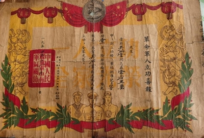 老人讲述完后,吴炳堂老伴应我们的请求打开了一个袋子,在一本泛黄的退伍证上写着“吴炳堂,出生时期:1926年10月。籍贯:湖北崇阳,志愿兵15军45师135团三营机炮连步机枪手”署名盖印为“国防部长彭德怀”。另外, 吴炳堂老人共荣立二次三等功,荣获一枚“金日成”奖章,一枚“抗美援朝”纪念奖章,一枚和平奖章,4次嘉奖通报。一张黄继光、孙占元、邱少云三位烈士追悼会的大照片。