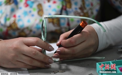 近日,在哥伦比亚首都波哥大,一家公司利用废弃的塑料瓶盖制作成墨镜再对外出售。该公司收集塑料碎片,利用这些垃圾生产出实用、 耐用和可循环的产品。(本报综合)