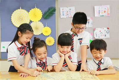 【董润华校长】我们以“国家课程校本化,选修课程系统化,国际课程本土化”为原则,在保证完整实施国家义务教育课程的基础上,融入双语特色课程,实施“学科+”模式,彰显八大主题节文化育人优势。在强基固本的前提下,为学生同步搭建个性化发展平台。例如,作为中英文学校,我们在使用部编英语教材的基础上,自一年级开始增设剑桥英语课, 优化浸泡式语言学习环境,全面强化听说读写能力。