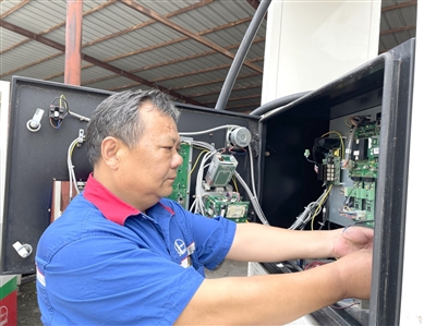 那是2012年9月21日清晨,尹辉坐班车前往崇阳公司沙坪站安装加油机,经过2个多小时的车程,一到达便开始拆卸油机、检查线路和管控系统。