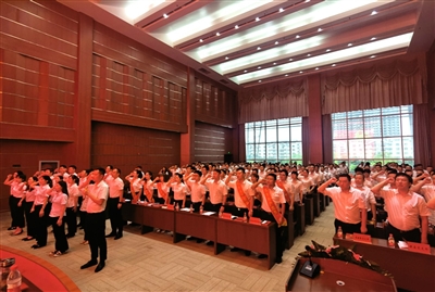 随后,集团全体党员和16名预备党员一同在党员代表阮佳程同志的带领下,面向党旗庄严宣誓,铿锵有力的宣誓响彻会场。徐峰同志强调,举行入党宣誓仪式,既是对建党100周年最好的献礼,更是我们传承红色基因的一次深刻党性教育。希望全体党员永远牢记入党誓言,坚定理想信念,在投身社会实践中加强党性修养和纯洁性建设;深入创先争优,在推动城发集团高质量发展中争当先进表率和时代楷模;坚守人民情怀,在服务人民群众中践行党的宗旨和初心使命。