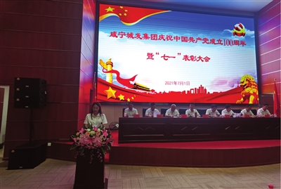 7月1日,在中国共产党成立100周年的伟大日子里,咸宁城发集团隆重召开庆祝中国共产党成立100周年暨“七一”表彰大会,回顾党的光辉历程,讴歌党的丰功伟绩,同时表彰一批优秀共产党员、优秀党务工作者和先进基层党组织。集团党委副书记徐峰同志主持会议,党委副书记、总经理曾勇同志讲专题党课。集团其他班子成员、各部门各子公司负责人,各党支部党员、入党积极分子共250余人参加大会。
