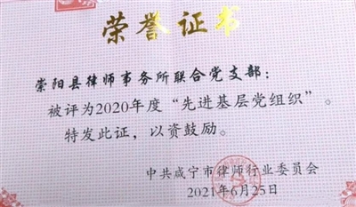 在司法局机关党总支的指导下,将四家律师事务所内的零散党员组织起来成立了全市第一家律师党建活动室,凝聚党心、民心,坚实基层党建根基。同时,不断探索党员律师和模范事务所的考核考评模式,让党的领导真正落实到法律服务的每一个环节。2020年,崇阳县律师事务所联合党支部被评为“咸宁市律师行业先进基层党组织”。