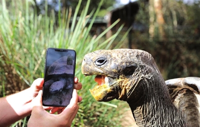 近日,在澳大利亚,当地动物园内有一只70多岁的濒危陆龟——加拉帕戈斯象龟,它在与自己被隔离的“女友”通过电话视频的方式“谈恋爱”。