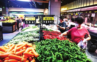 8月10日,在温泉城区某超市内,市民在选购生活所需物资。