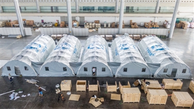 当日,2座“猎鹰号”硬气膜实验室在江苏扬州国际展览中心紧张搭建中,将用于大规模核酸样本的检测与筛查。