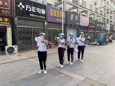 “社区需要人手吗?我们刚好可以帮忙!”8月4日,嘉鱼樱花社区居民郑爱民主动找到社区,想要帮助社区共同开展疫情防控工作,随后她带着她的舞蹈队一起组建了临时的志愿宣传队,每天在社区内协助开展防疫宣传。