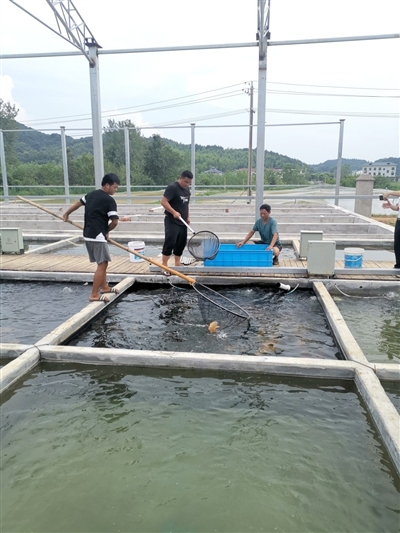 “现在的人养殖观赏鱼成为一种时尚、一种身份的象征,我们养殖观赏鱼的市场行情不断向好,大家也越干越有劲,每天一大早大伙儿都忙得不停歇,清杂草、投饲料、增氧……认真做好每一个细节。”7月底,记者来到新店镇朱巷村观赏鱼养殖基地,负责人胡静、张辉夫妻俩正忙着和技术员一起查看观赏鱼的生长情况。