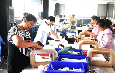 9月2日,咸宁高新区横沟桥镇李堡村,当地村民在扶贫车间生产电力互感器。