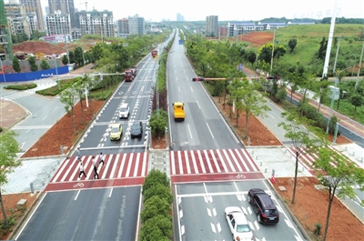 市政府投资项目建设管理局相关工作人员介绍:“这条斑马线东向连接咸宁市残疾人康复中心。以前,上下学过马路必须绕道,部分人为抄近道便逆行或横穿马路,存在严重安全隐患。智慧斑马线既解决了行人横穿马路的问题,同时也能够帮助视障及听障人士过街通行。”