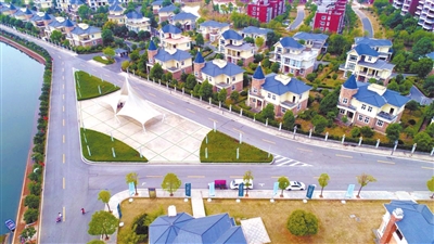干净宽敞的柏油马路两旁,绿树成荫,鲜花盛开。水波潋滟且清澈的湖水周边,一排排设计新颖、造型别致的两层村民别墅镶嵌在绿茵丛中。孩子在房前屋后奔跑嬉戏,村民脸上洋溢幸福的笑容,构成了一幅“神州第一组”官桥八组新农村的美丽风景。