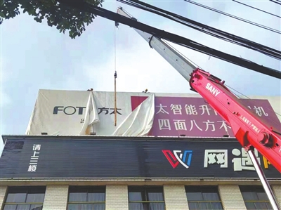 据悉,连日来的大型户外违规广告牌集中整治,累计拆除大型户外违规广告牌7处,破损店招20余处,累计约2000㎡。 通讯员 邓丹 杜承峰 摄