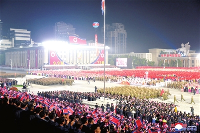 据朝中社报道,阅兵式开始前先举行了庄严的升国旗仪式,并在《辉煌的祖国》乐曲声中鸣21响礼炮。