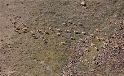 11日,在新疆双河市境内的深山,国家二级保护动物盘羊开始聚集,为即将到来的繁殖季节做准备。