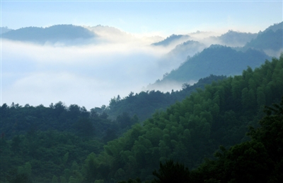 “绿树村边合,青山郭外斜。”崇阳县白崖山上绿树葱葱,雾霭朦胧,山下炊烟袅袅,阡陌纵横,远远望去,好似一幅山水田园画卷。白崖山平均海拔600米,最高峰880米,素有“小井冈山”之称。
