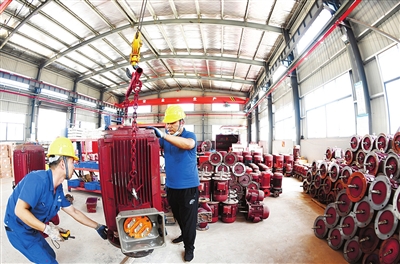 日前,湖北远博流体科技有限公司员工在调装产品,准备销往市场。