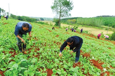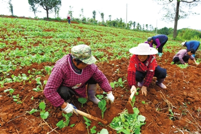 18日,咸安区汀泗桥镇黄荆塘村3组,露天苗床里一株株油菜苗绿叶葱茏,十余名村民忙着移栽油菜。