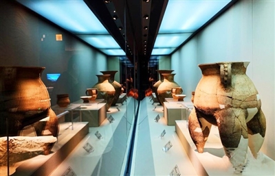 近日,青海省民和县喇家遗址博物馆内展出的陶罐。喇家遗址位于青海省海东市民和县官亭镇喇家村,是目前中国考古发现的唯一一处大型灾难性遗址,被称为“东方庞贝”。