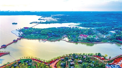 10月20日,夕阳下的嘉鱼县蜜泉湖旅游度假区如诗如画。该景区位于二乔大道武侯坡蜜泉湖畔,共分三期建设,总占地32平方公里,其中一期总投资30亿元。目前,旅游设施逐渐完善,成为嘉鱼旅游发展一道靓丽的风景线。 雷平 摄(影像咸宁)