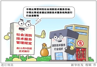 《社会消防技术服务管理规定》自11月9日起正式施行。规定明确,消防技术服务行业组织不得从事营利性社会消防技术服务活动,不得从事或者通过消防技术服务机构进行行业垄断等。