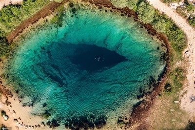 塞蒂纳河不仅是克罗地亚最美的河流之一,真正神奇的地方是它的源头,蓝绿色的水清澈见底,像是镶嵌在地面上的眼睛,宛如“地球之眼”,给人一种深邃又神秘的感觉。