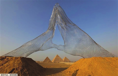 近日,在埃及吉萨,当代艺术展“永恒即现在”在吉萨金字塔附近举行,艺术作品与沙漠景观和谐并存。(本报综合)