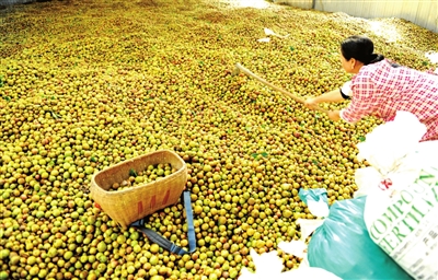 “这里将近有10万斤,目前正进行存放后熟。”天宇农林总经理张冬锦将油茶果整平后说,经历几天后熟过程,就会用机器进行剥果,再进行烘干后就可用来榨油了。