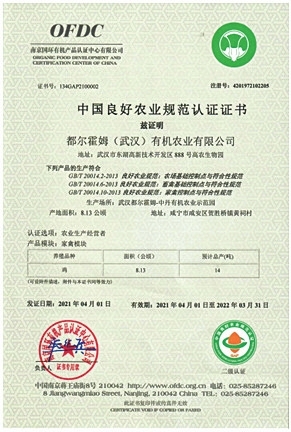 示范园总面积400亩,养殖场区域占地面积122亩,鸡舍占地面积4200㎡,设计蛋鸡总存栏量50000羽,经营产品有机鸡蛋,注册商标为都尔霍姆 DUEHOLM,年产量1800万枚,年产总价值 5000万元。