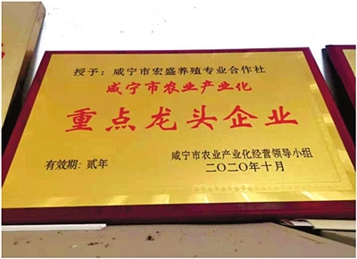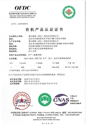 咸宁市宏盛养殖专业合作社的“无公害农产品证书”土鸡蛋,该合作社成立于2012年,现生产基地位于贺胜桥镇万秀村,是一家以节粮型蛋鸡养殖及禽蛋销售、水产养殖、苗木种植为主的省级标准化示范场。公司占地约100余亩,现资产总额达600万元,拥有专业养殖技术人员10余名,合作社已经形成产、供、销一条龙农业产业化发展模式。通过“124模式”专门养殖蛋鸡。所谓“1”即1栋标准化封闭式鸡舍,“2”为饲养蛋鸡2万只以上,“4”为自动供料、自动捡蛋、自动换气、自动传送清粪的四套全自动设备。合作社目前年饲养蛋鸡11万只,年产蛋1500余万枚,年销售收入1500万元,利润180万元。依托中华贺胜鸡汤小镇地理优势,合作社不断扩大生产规模,产品在各地市场已供不应求。