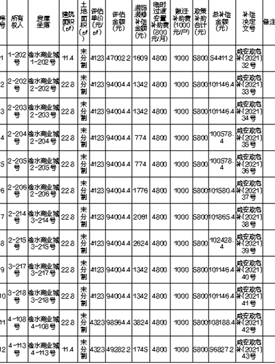 淦水商业城1-202、2-202、2-203、2-204、2-205、2-206、2-214、2-215、3-217、3-218、4-108、4-113房屋所有权人(买受人)或继承人: