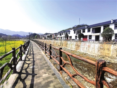与通羊镇港口村一条马路之隔,是大畈镇下杨村,这里的移民安置点,选用徽派风格,白墙黛瓦,与屋前的青山浑然一体。