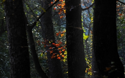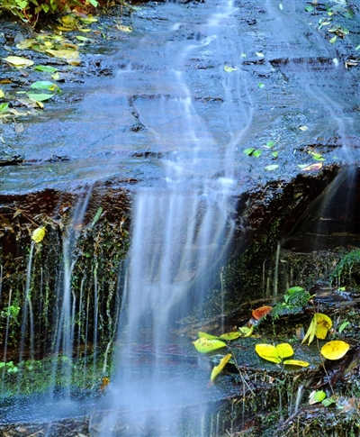 一阵秋风吹过,林间小路上铺满厚厚一层落叶,软绵绵的,行走其间,发出“嘎吱、嘎吱”的轻微声响,让人恍惚间仿佛置身世外桃源。