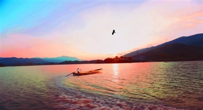 富水湖宽广处烟波浩瀚,似洞庭之坦荡;狭窄处曲径通幽,赛漓江之奇美;两岸青山起伏,青峰翠影映照湖面,颇有山在湖中走,人在画中行的意境。