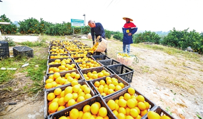 脐橙园负责人汪平介绍,果园共有360亩,年产脐橙35万斤左右。虽然橙子的品质一如从前,但今年销量特别好,这得益于陆溪镇乡村旅游开发。