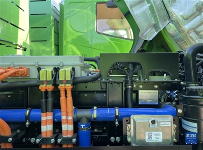 在位于广州黄埔区的湾区氢能孵化中心,一排车身涂成绿色的建筑垃圾运送车全部都是氢燃料电池驱动,仅需8至15分钟便可完成充氢,续航里程超过400公里。