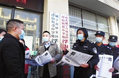 12月2日,咸安区浮山街道办事处邀请司法干警在浮山社区为群众宣传如何防范电信诈骗知识。