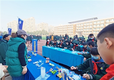 雷宗刚介绍,学校每年都会举办“科技节”、“美育节”、“阅读节”、“体育节”四节活动,科技节旨在从教育的角度培养学生的兴趣爱好,培养学生科技创新的意识,知道科技强国的道理,激发每一位学生积极向科学、科研靠拢。