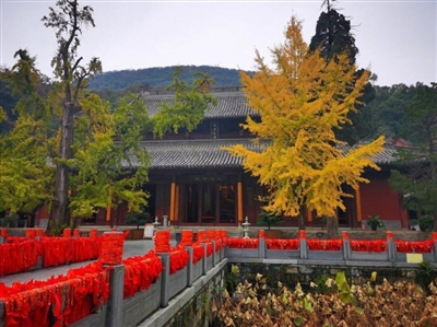 虽已入冬,但湖北当阳市的玉泉寺风景区内,却是秋色正浓。玉泉寺银杏树“披金”,黄叶飘飞,遍地金黄的银杏叶,令人陶醉。玉泉寺为佛教圣地天台宗祖庭之一,曾与浙江天台国清寺、山东济南灵岩寺、江苏南京栖霞寺并称为“天下四绝”。
