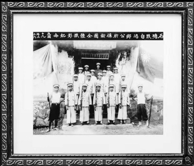 “两地春光同日尽,居人思客客思乡”,一张照片两地情。100多年前,海沧石塘自治乡公所民团全副武装整为守护乡民,合影照片赠予海外侨亲留念,给漂洋在外的亲人一个念想。海沧、槟城两地“谢氏”民间侨团创立已有200年的历史,侨亲密切来往,但祖地原保存的资料,在“文化大革命”期间被焚毁。该照片是目前能够找到唯一见证海沧海内外侨胞携手救国护乡的历史照片。它的历史可追溯到20世纪初“闽侨救乡会”开展的“救国救乡运动”,海外侨胞捐款,家乡组织民团,武装守护家乡平安的事迹。