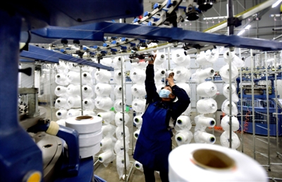 12月16日,嘉鱼县经济开发区湖北嘉麟杰纺织品有限公司制造车间,工人正在机器旁忙碌。