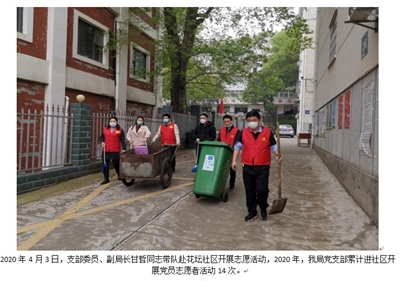 优化服务 成立结防院小区党支部,配优配强书记和第一书记,为群众办实事、解难事、做好事;积极做好创文固卫工作,组织党员志愿者深入花坛社区,宣传创文工作和收集调查问卷,参与“万人洁城”活动,落实“门前四包”。