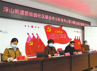 本报讯 通讯员张蒙晰报道:日前,市住房公积金中心下沉包保网格社区碧桂园社区联合开展2021年第12期支部主题党日活动,中心党组成员、副主任涂秋意围绕“解读党的三个历史决议”主题讲授党课。
