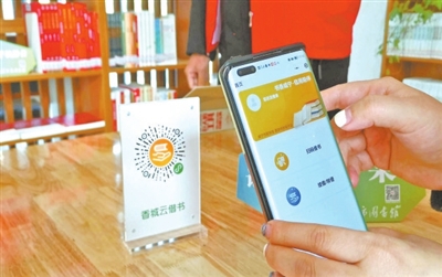 记者看到,每张书桌上都放有一个“香城云借书”的小程序码。工作人员介绍,前来借书的居民不用办理借阅证,不用交押金,只需要通过“香城云借书”的小程序,扫码就可借阅书籍。归还时将图书交给社区负责香城书房运营的工作人员即可。
