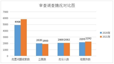 2021年,全市处置问题线索5842件,立案1900件,给予党纪政务处分2082人,采取留置措施65人。发出纪检监察建议296份, 回访教育受处理处分干部356名,向党委(党组)宣布处分决定实现常态化、规范化,变纪律处分“一张纸”为廉政教育“一堂课”。 联合有关部门和单位共绘清廉咸宁建设“施工图”,扎实推进“1+7”清廉载体建设,推动各级党组织负责人讲廉政党课800余场次。做实警示教育,拍摄警示教育片《迷途》,编写《警示录》,召开警示教育大会,用身边典型教育身边人。