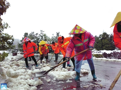县城管局启动应急预案,建立扫雪防冻小组,全员上岗组织扫雪除冰队伍,重点对区域内的高炮广告、楼顶广告等大型户外广告、绿化树木及易积雪设施的结构负重情况安全隐患排查,对主次干道、桥梁、坡道等处进行扫雪铲冰、撒盐除冰作业,及时清理被冰雪压断的绿化树枝,及时消除安全隐患。共投入工业盐4吨、扫雪小铲车4台、吊车2台,全力维护容貌秩序和行人出行安全。城管系统共出动561人,投入车辆39台次。