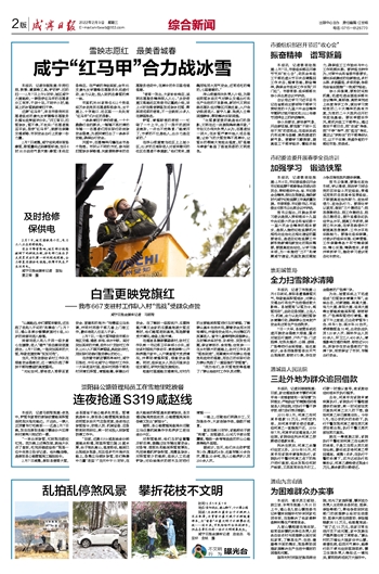 咸宁“红马甲”合力战冰雪