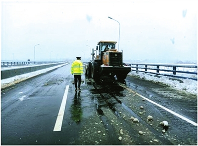 本报讯 通讯员吴冲、毕璠报道:2月7日凌晨,我市迎来虎年首场暴雪。市交通运输局迅速启动应急抢险保畅预案,共投入抢险人力3500余人次、机械设备560余台次,融雪剂(工业盐)460余吨,标志牌600多块,共清除路面110余处,计800余公里,清理桥面积雪300余座。