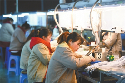 2月10日,通山县经济开发区科奥工业园,湖北永强富科技实业有限公司生产车间内,工人们正在生产线上忙生产、赶订单。